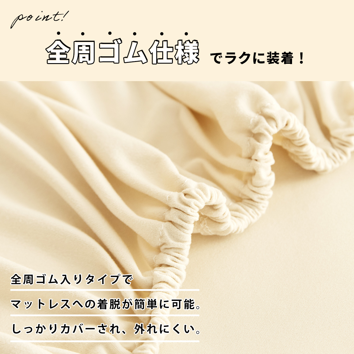 全周ゴム入りタイプでマットレスへの着脱が簡単に可能。