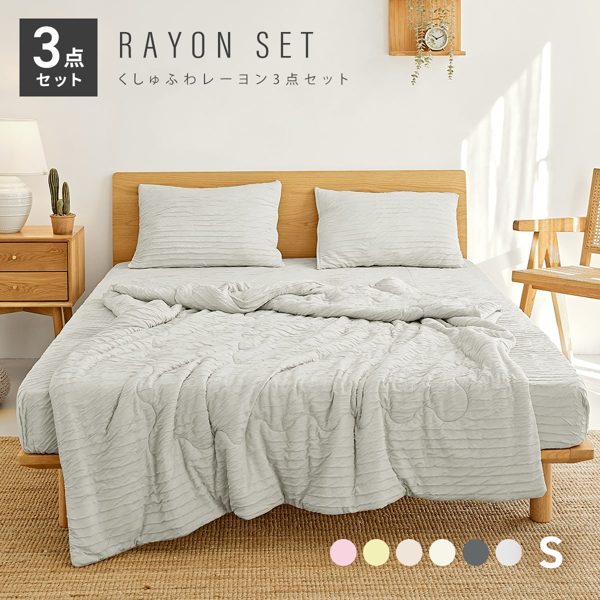 レーヨンケット、ボックスシーツ、枕カバーが揃った3点セットだから
