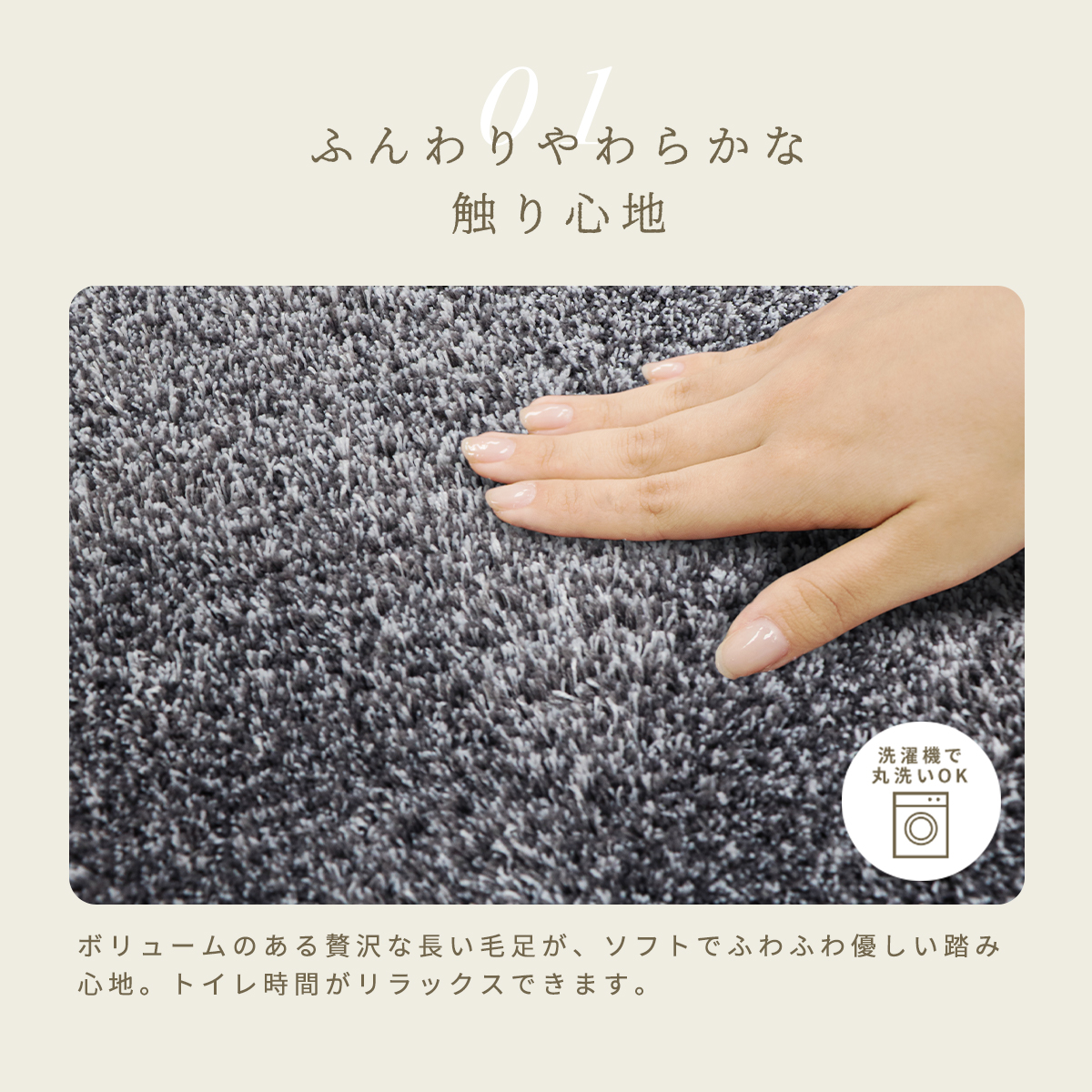 触れると沈み込むほど毛足が長くソフトタッチ。