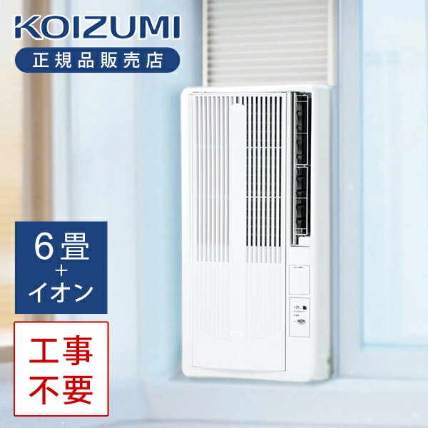 コイズミ 窓用ルームエアコン 5〜8畳 マイナスイオン KAW-19251/W 窓 取付 ウィンドウ エアコン 冷房 除湿 工事不要 リモコン 1.9kW KAW19251W|