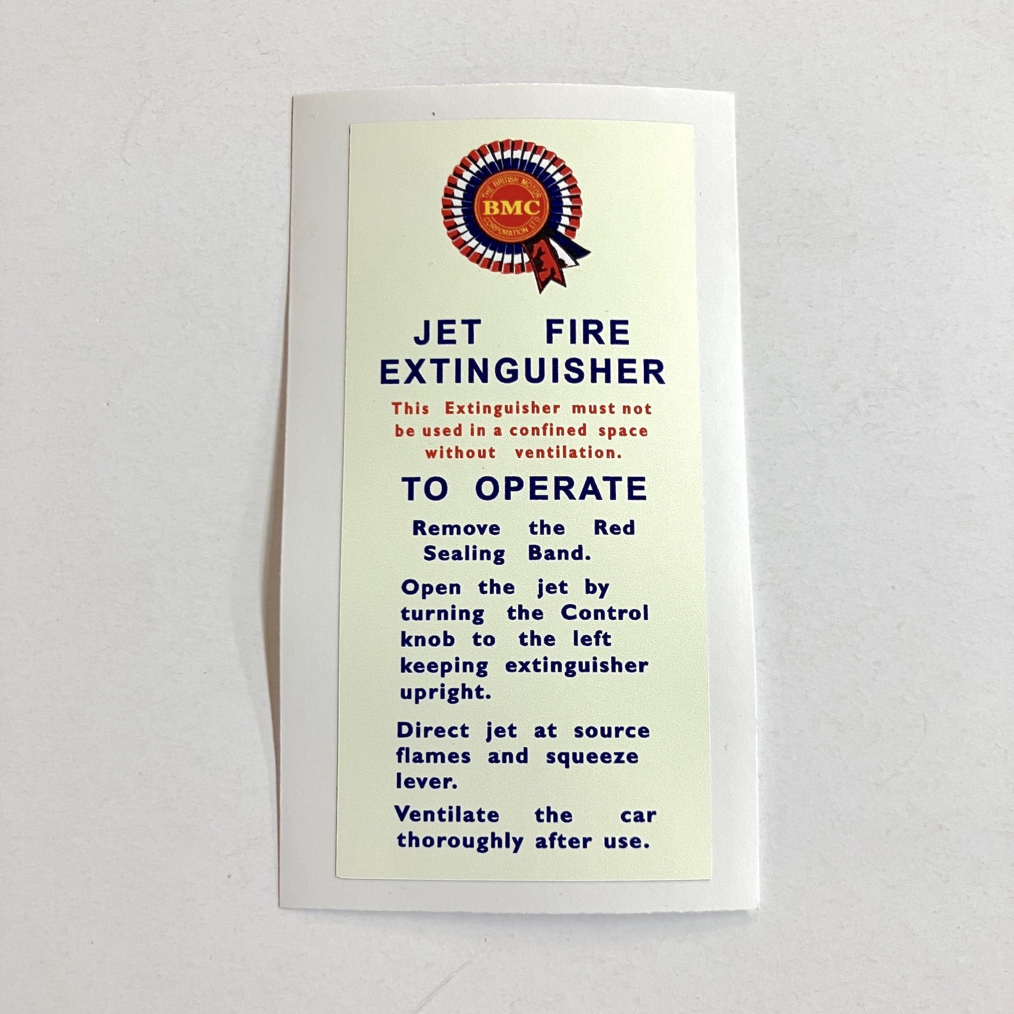 ローバーミニの、BMC時代に純正で発売されていた消火器用ステッカーの新品リプロ品です。
