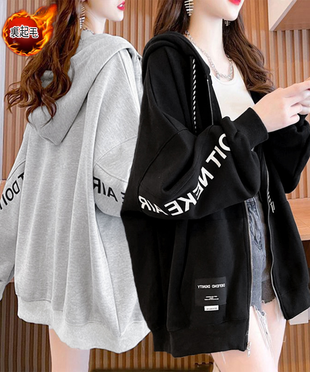 フード付きスウェット レディース カジュアル ロングパーカー ドロップショルダー 裏ボア 体型カバー 秋冬ライトアウター