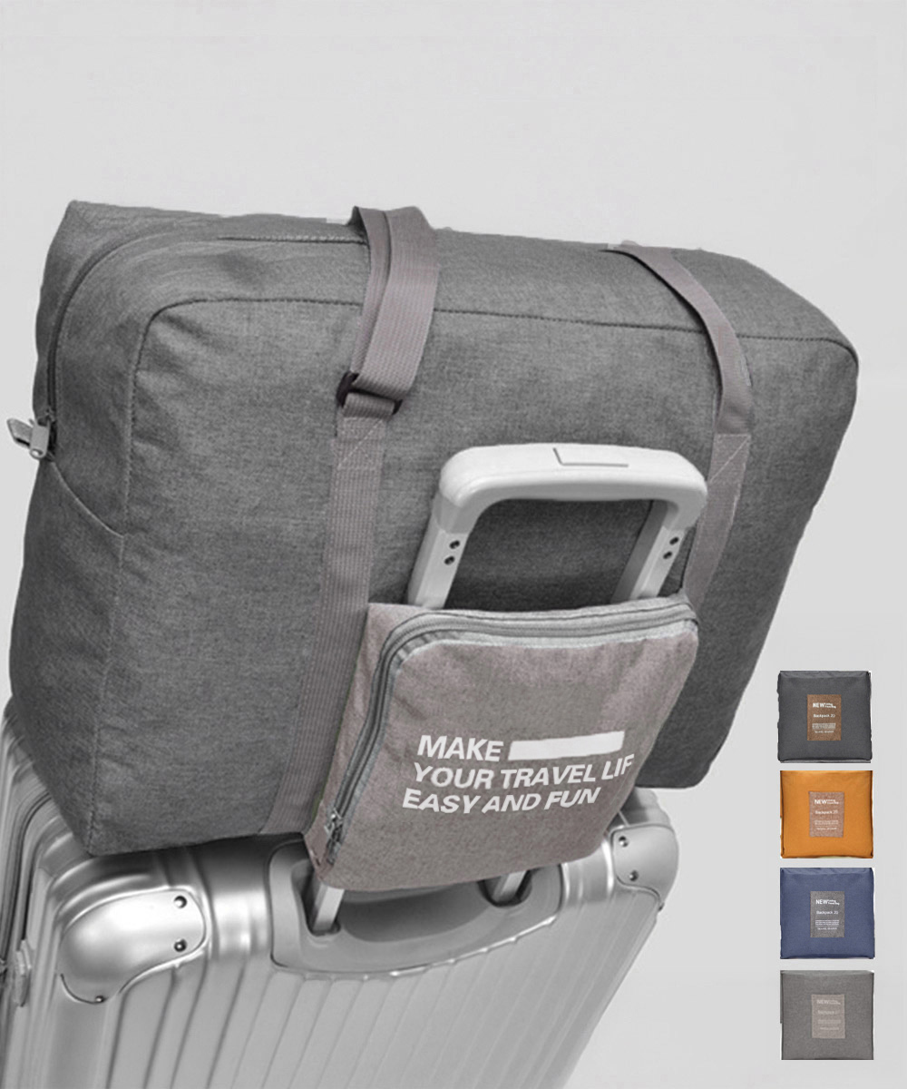 折りたたみ式でコンパクトに収納できるトラベルバッグ。