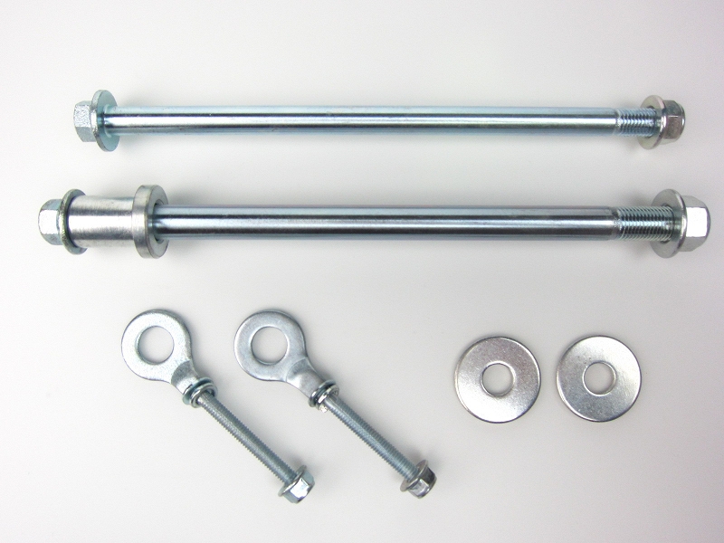 モンキー、ゴリラのアクスルシャフト、チェーンアジャスター、カラー、スイングアームピポットシャフトのセットです。