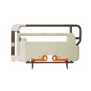 ・ベッドのオプション取付穴に差し込んで、固定ハンドルを固定位置に突き当たるまで回すだけでしっかりと取り付けられます。取り外すときには解除位置にカチッとはまるまで回すだけなので、必要なときにはすばやく取り外すことができます。