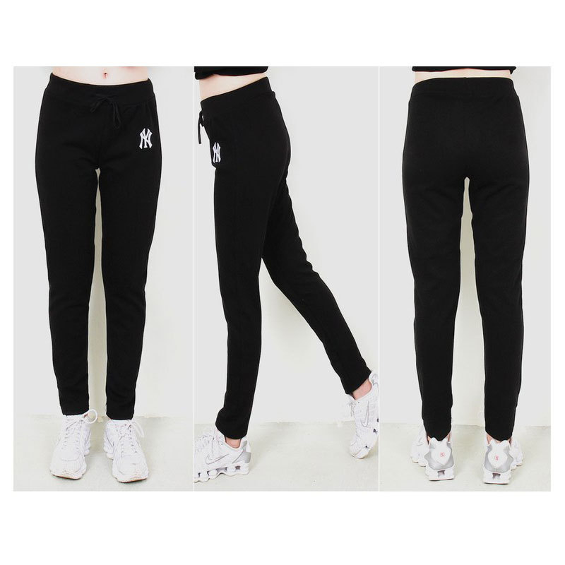 スウェットパンツ NY刺繍ロゴ 薄手 スキニーパンツ 無地 ウエストゴム&紐付き【メール便送料無料】