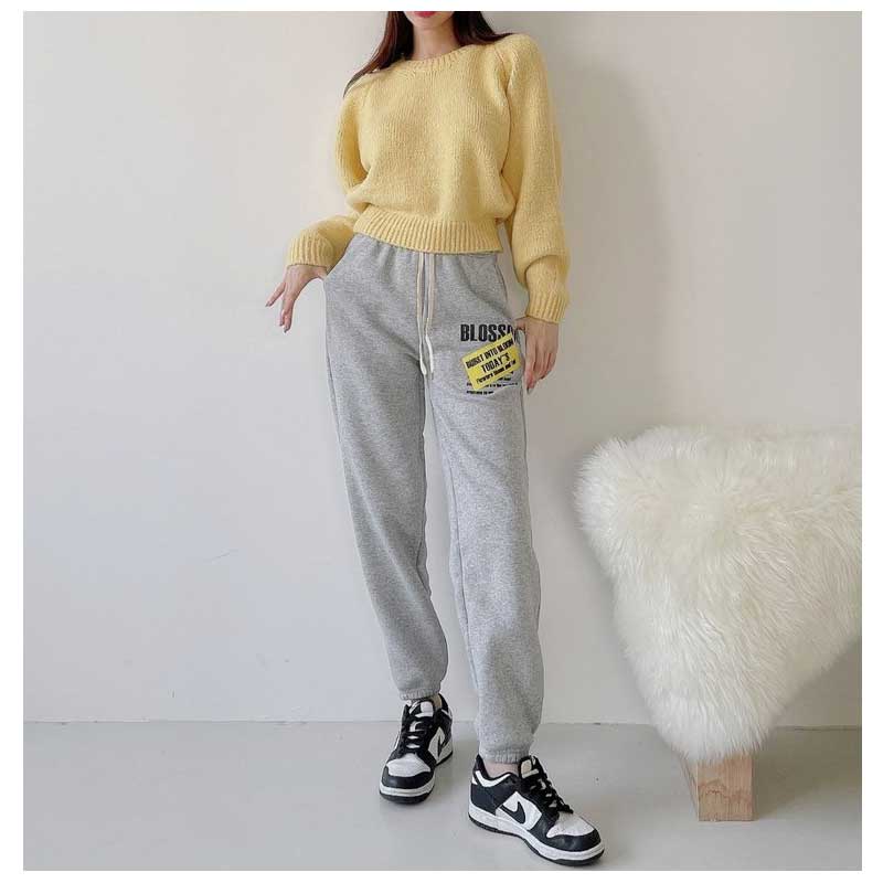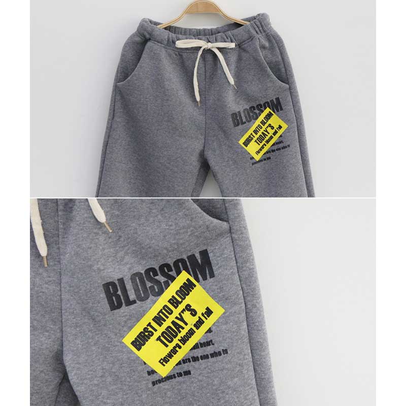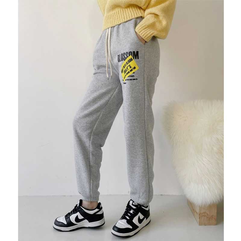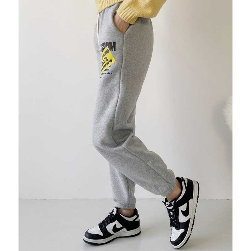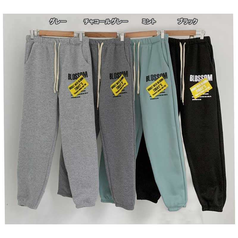 ジョガーパンツ 裏起毛 英字[BLOSS…]プリント スウェットパンツ ポケット付き ゆったり 無地 ウエストゴム&紐付き