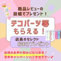 レビュー投稿キャンペーンを実施中です、ご参加頂ける方に店長セレクトのおまけ(追加ホイップ・デコペン・デコパーツ・ヘアピン等ランダムセレクト)をプレゼントいたします★