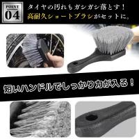 ・タイヤの泥汚れをガシガシ落とせるショートブラシ(グレー)→タイヤの溝・側面をガシガシ洗浄!