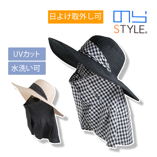 日よけタレを外すと麦わら風の可愛いハットに変身し私服にも使えます。
