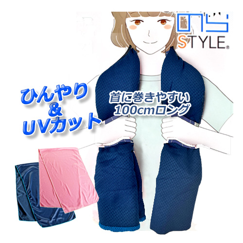 のらスタイル ひんやりタオル NS989 ロング UVカット 冷感素材 抗菌防臭 冷たいタオル 首に巻く 作業 スポーツ