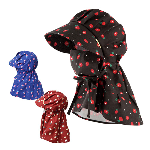 マスク付き農園フード スマイル 椿 NSR125 (レディース) 農園帽 つばき 農作業 ガーデニング 日焼け対策 UV対策 顎紐付き 綿100% のらスタイル