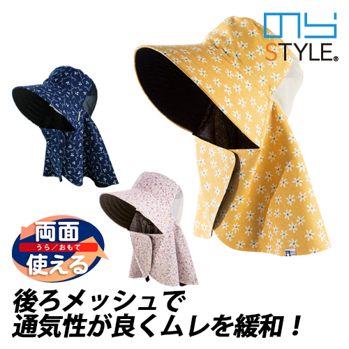 機能:UVカット、通気性、リバーシブル、フロント面ファスナー付き、タレ付きで首周りの日焼けもカバー