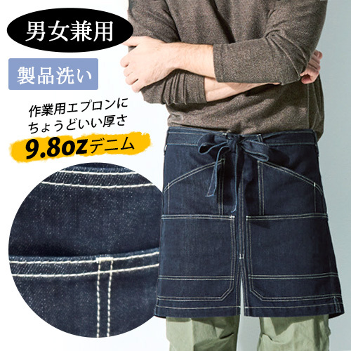 SOWA ワークショートエプロン デニム 10110 (男女兼用) 桑和 腰下エプロン インディゴ 防汚 農作業 飲食店 DIY