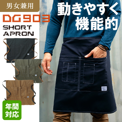 D.GROW ショートエプロン DG903 (男女兼用) クロダルマ 腰下エプロン DIY カフェ 飲食店 ガーデニング 園芸 綿100%