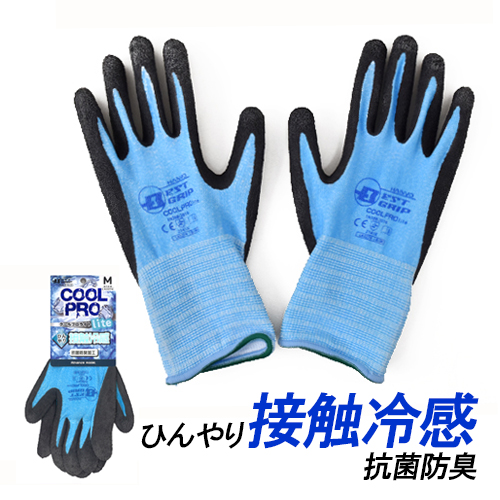 特殊接触冷感糸を手袋内側に使用しており、夏場の作業に最適です。繊維部分には抗菌防臭加工を施しているため、汗臭くなりにくく、細菌の増殖を抑えます。強力なすべり止め加工を施しており、優れたグリップ力を発揮します。