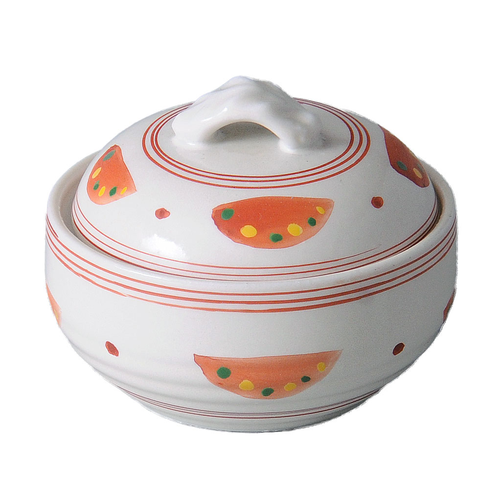 赤絵二色点蓋物 和食器 蓋向・円菓子碗 業務用 約9.8cm 在庫処分品 数量限定 セール