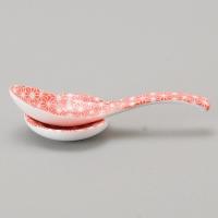 麻の葉赤レンゲ受皿 中華食器 レンゲ 業務用 約6cm 磁器製 れんげ ラーメンレンゲ れんげスプーン さじ