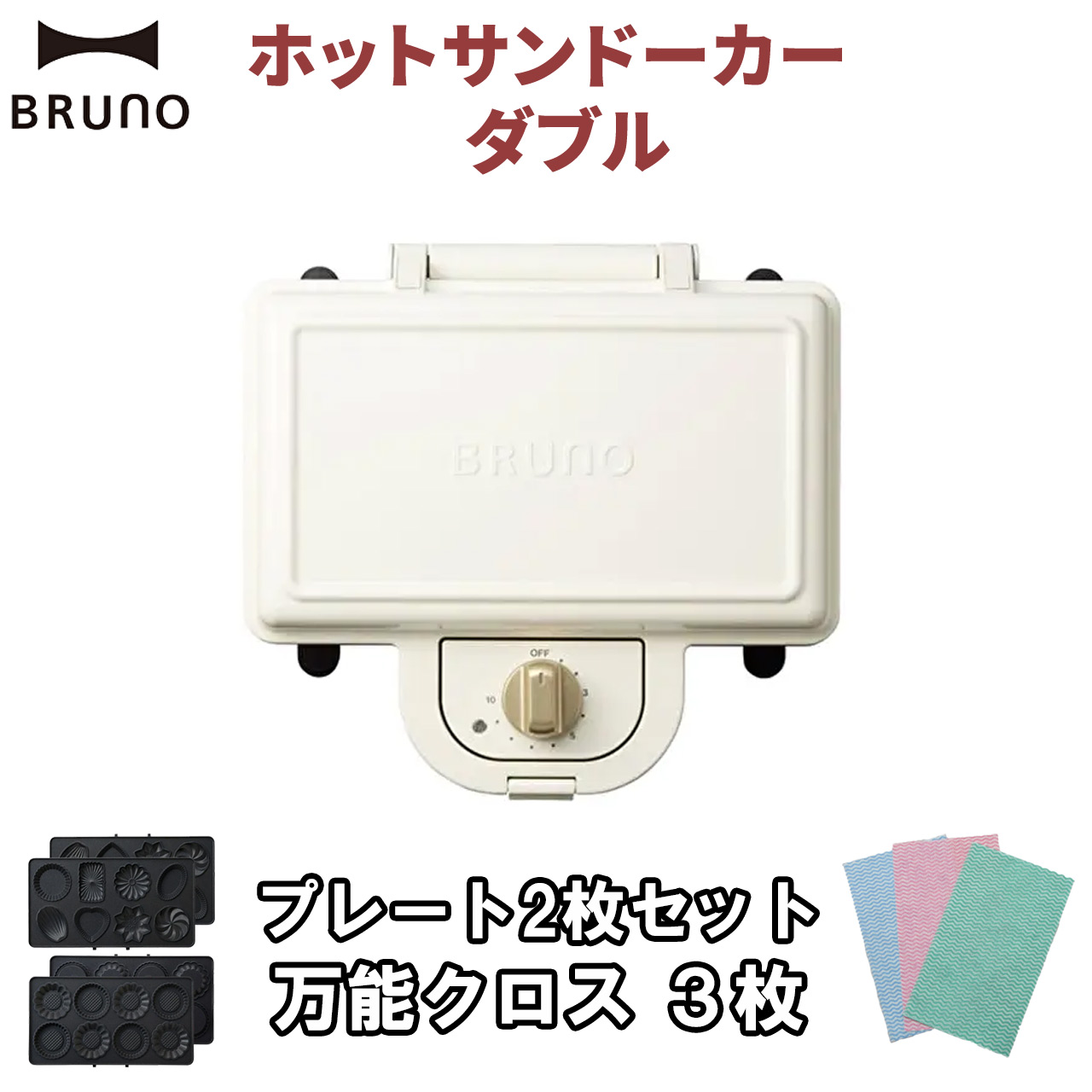 【プレート2枚 クロス3枚付き】BRUNO ホットサンドメーカー ダブル BOE044-WH TART GATEAU ブルーノ