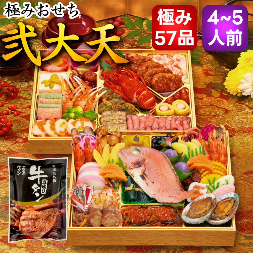 おせち おせち料理 2026 予約 弐大天 4人前 5人前 57品 10.5寸 送料無料 お節 お節料理 2025 冷凍 セール ランキング 和洋 和洋折衷 朝陽 2025 蔵王福膳