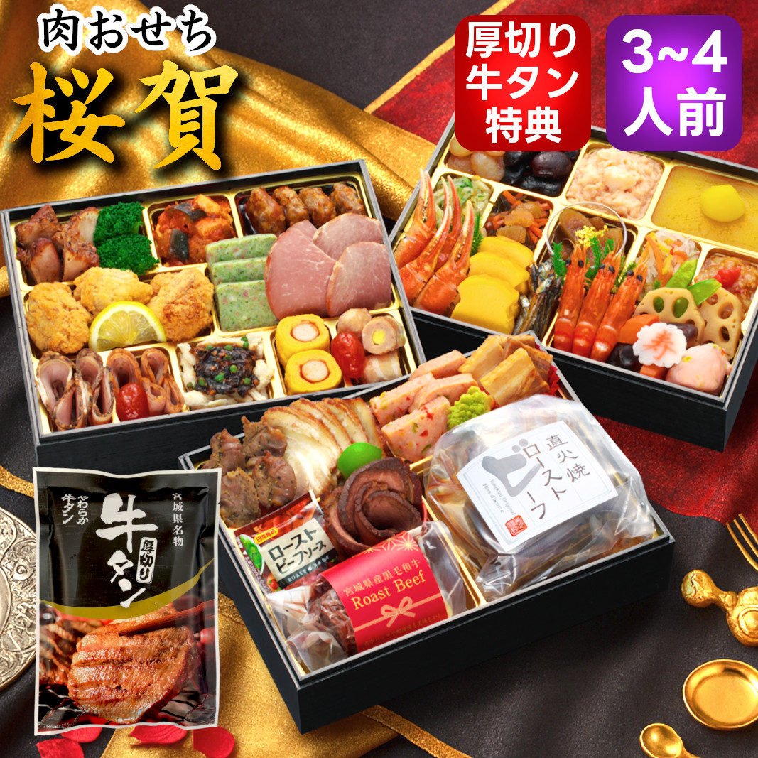 おせち おせち料理 2026 予約 桜賀 肉おせち 3人前 4人前 送料無料 お節 お節料理 2025 冷凍 セール 肉 お肉 肉づくし 人気 有名 おいしい 朝陽 蔵王福膳