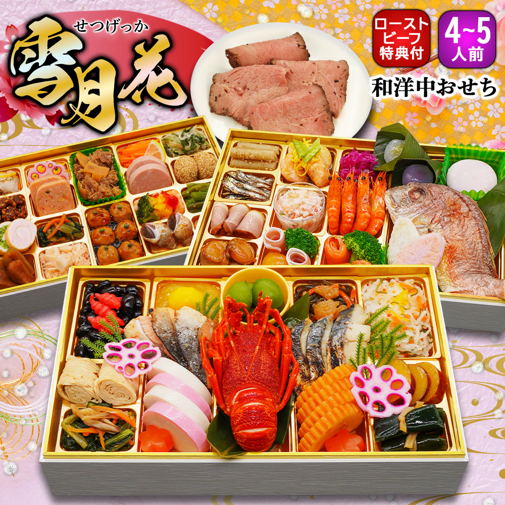 おせち おせち料理 2026 予約 雪月花 4人前 5人前 送料無料 お節 お節料理 2025 冷凍 セール ランキング 和洋中 和洋折衷 朝陽 2025 蔵王福膳