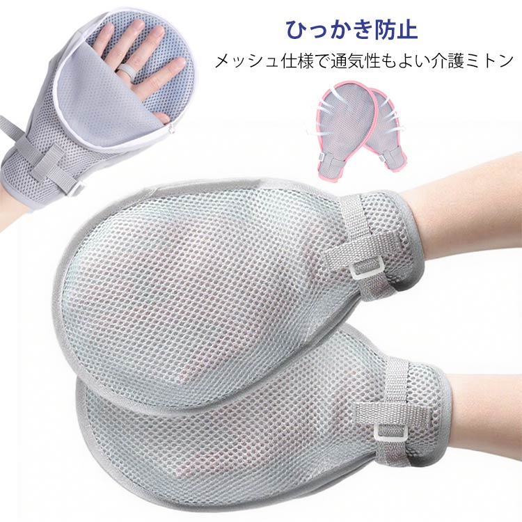 ・メッシュ仕様で通気性もよい介護ミトン ・手指や爪のひっかきからお身体を守ります。 ・保護パッドにより、物がつかみにくい形状になっています。 ・手袋の中はゆったりしていて手の動きを妨げません。 ・取り外しがしやすいヒモタイプ。 | |