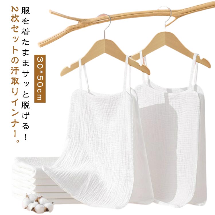服を着たままサッと脱げる!2枚セットの汗取りインナー。 4重ガーゼで肌触りふんわりやわらか。吸水速乾性に優れたコットン素材で、さらっと快適な肌触り♪ 汗染み予防としてはもちろん、汗をかいても丸ごと脱げるサイドオープンシルエット◎ 下着の下に着用すると、より吸汗してくれます◎ お出かけや通勤通学で背中の汗染みが気になる、汗でムレて臭いが気になる、汗をかいた後背中が冷たい。 おうちでのリラックスタイム、運転、スポーツシーンなどにも! | |