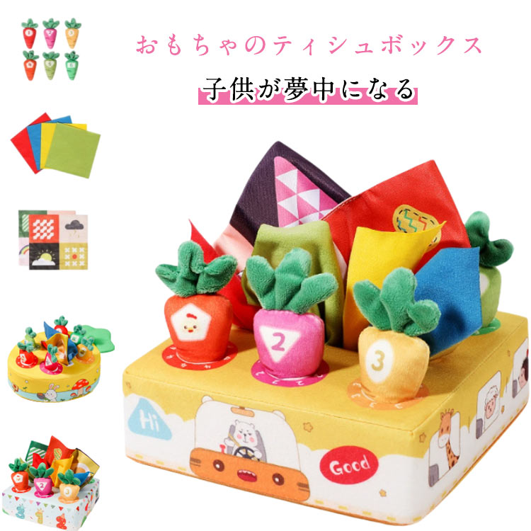 | 【おもちゃのティシュボックス】 【子供が夢中になる】 セット内容:本体、にんじん6個、普通スカーフ4枚、音が出るスカーフ2枚 ★色と形の認識を強化し、創造性と想像力を育み、手と目の調整と手の柔軟性を高め、認知スキルを向上させる教育玩具です。 ★つかんだり、いれったり、引っ張ったり、つまんだりなど成長に合わせて様々な遊び方で楽しめます。 ★このおもちゃは、にんじんを抜く、ティッシュを引き出すという2つの魅力的な遊び方を提供します。この 2 つの機能により、楽しみがさらに追加され、子供たちは何時間も楽しめます。 ★知育効果いっぱい!楽しみながら指先をたくさん使うと思考力・記憶力・運動能力など様々な脳の発達を促成します。 ★カラフルな色彩で、色々な可愛い動物柄が入っており、 子供から大人まで気に入って使っていただけるよう、 いろいろなカラーバリエーションを取り揃えております。 ★ティッシュボックスは壊れにくく、小さな手でも握るのに適しています。女の子にも男の子にも人気があり、遊びやすい適切なサイズです。 ★エコの素材を使用し、耐久性はもちろん、環境にも優しい素材です。さらに当製品は塗料に水性塗料を使用しております。 ★この知育おもちゃは、リアルな外観で精巧にデザインされて、誕生日、クリスマスなどの時、女の子や男の子へのプレゼントに最適です。 | |
