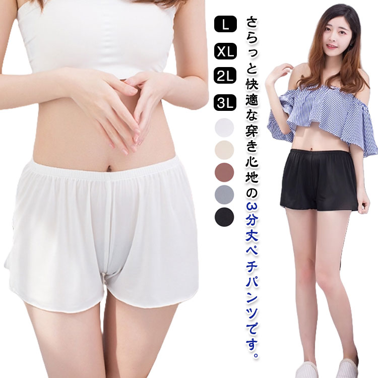 | さらっと快適な穿き心地の3分丈ペチパンツです。 薄手のスカートやパンツを着用する際、インナーの色透けやシルエットが響くのを防ぎます。 通気性の良い素材を使用し、汗ばむ季節のベタつきやムレをおさえてサラッと快適。 てろんとした薄手生地なのでラインにも響きにくい! 下着の透け防止やめくれ、覗きガードに最適です。 | |