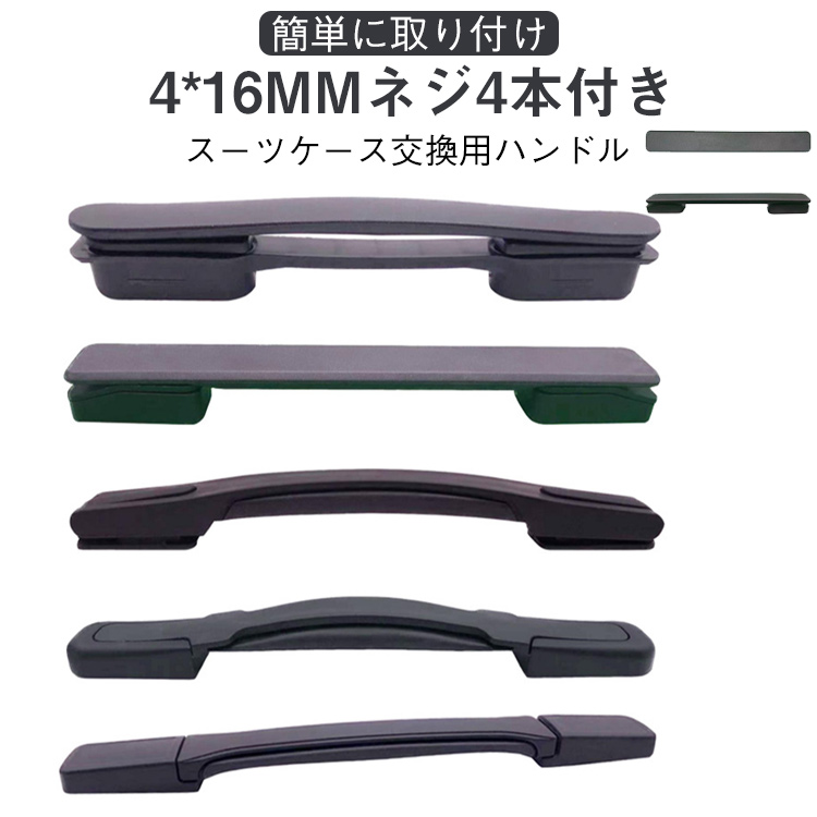 【スーツケース交換用ハンドル】【4*16mmネジ4本付き】【簡単に取り付け】 【簡単修理で経済的】スーツケースハンドルの交換用部品として設計された本製品はご自身で簡単に交換修理ができます。スーツケースの買い替えや業者への修理依頼よりも安価で済むためお財布にも優しい!ドライバーで古いハンドルを外し付属のネジで新しいハンドルを取り付けるだけの簡単な作業で特別な工具や専門知識は不要です。 【様々なスーツケースに対応】この交換用ハンドルは汎用モデルで様々なタイプのキャリーケースに対応できます。グリップが壊れたからといってスーツケースを買い替える必要はなくハンドルを交換するだけでお気に入りのスーツケースを長く愛用できます。ネジ穴間の長さが合えば交換できますので、倒れやすい持ち手や大きすぎる取っ手も改善できます。 【適合確認と付属品】スーツケース内側のファスナーを開けネジで固定されているハンドルを取り外しネジ穴間の長さを測定してください。穴間の長さが合っていれば本製品を取り付けることができます。ネジを4本同梱しているためお使いのスーツケースのネジが破損や紛失していても問題なく取り付け可能です。 | |