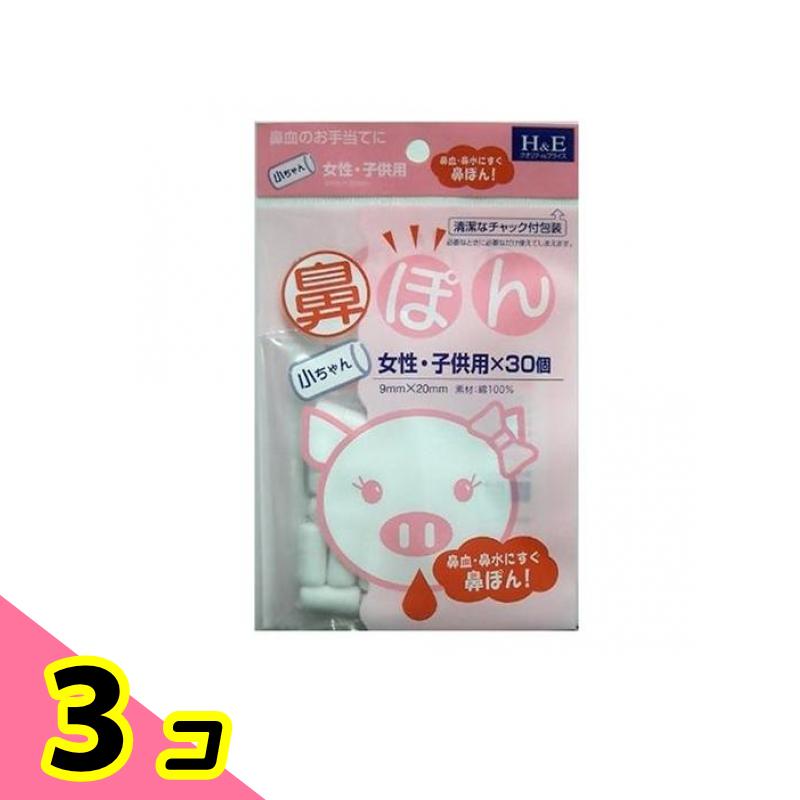 脱脂綿 棒 鼻血 鼻水 鼻ぽん 小ちゃん 女性・子供用 30個入 3個セット