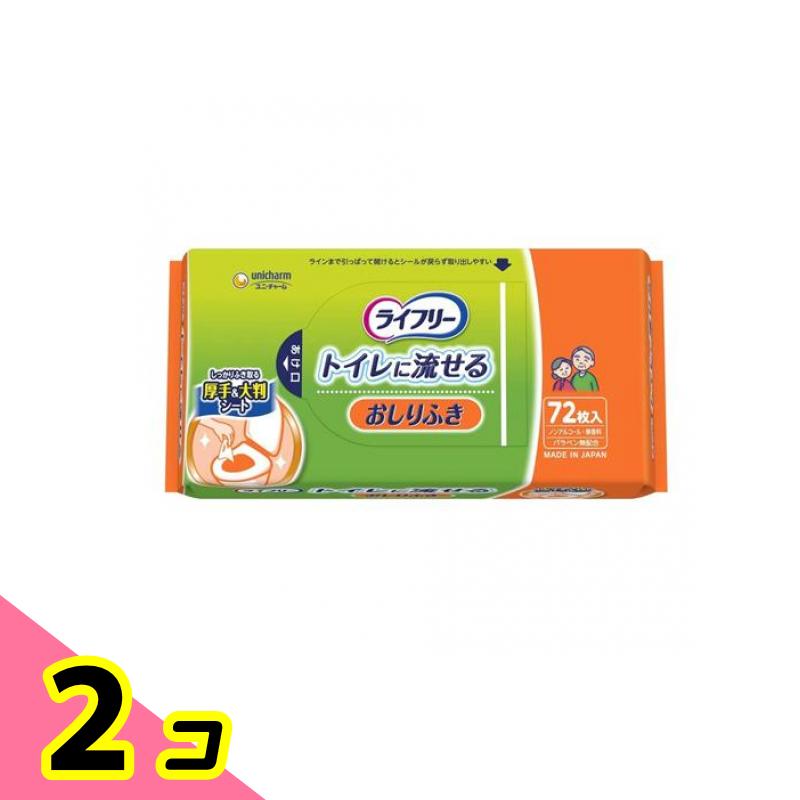 ライフリー おしりふき トイレに流せる 72枚 2個セット