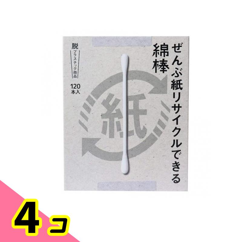 ぜんぶ紙リサイクルできる綿棒 120本 4個セット