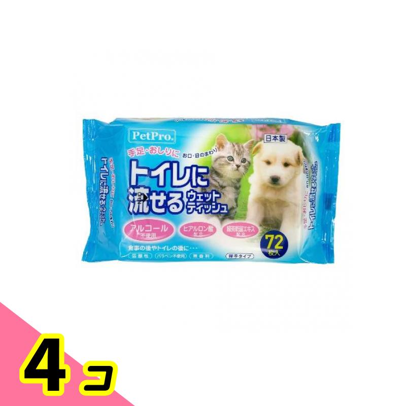 ペットプロ トイレに流せるウェットティッシュ 72枚入 4個セット