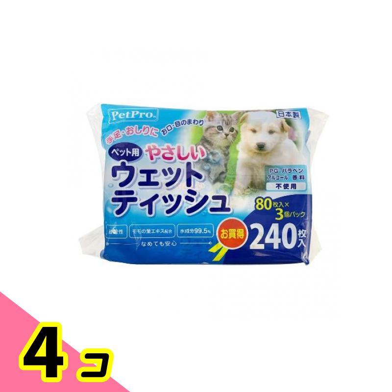 ペットプロ やさしいウェットティッシュ 80枚入× 3個パック 4個セット