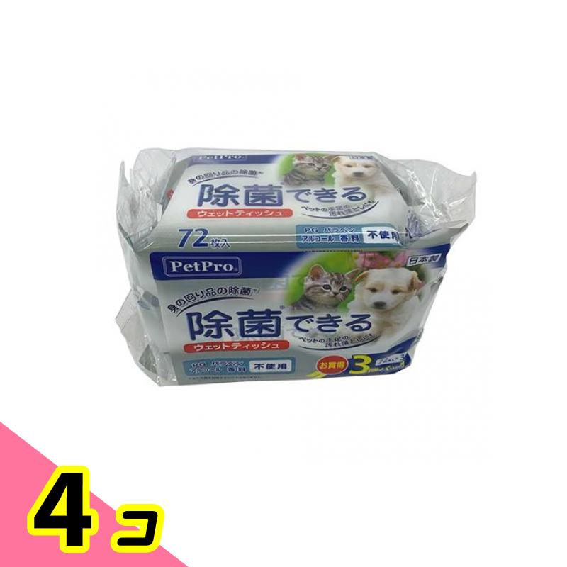 ペットプロ 除菌できるウェットティッシュ 72枚入× 3個パック 4個セット