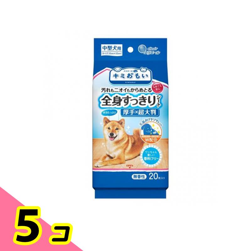 エリエールペット キミおもい 全身すっきりシート 中型犬用 30×30cm 20枚入 5個セット
