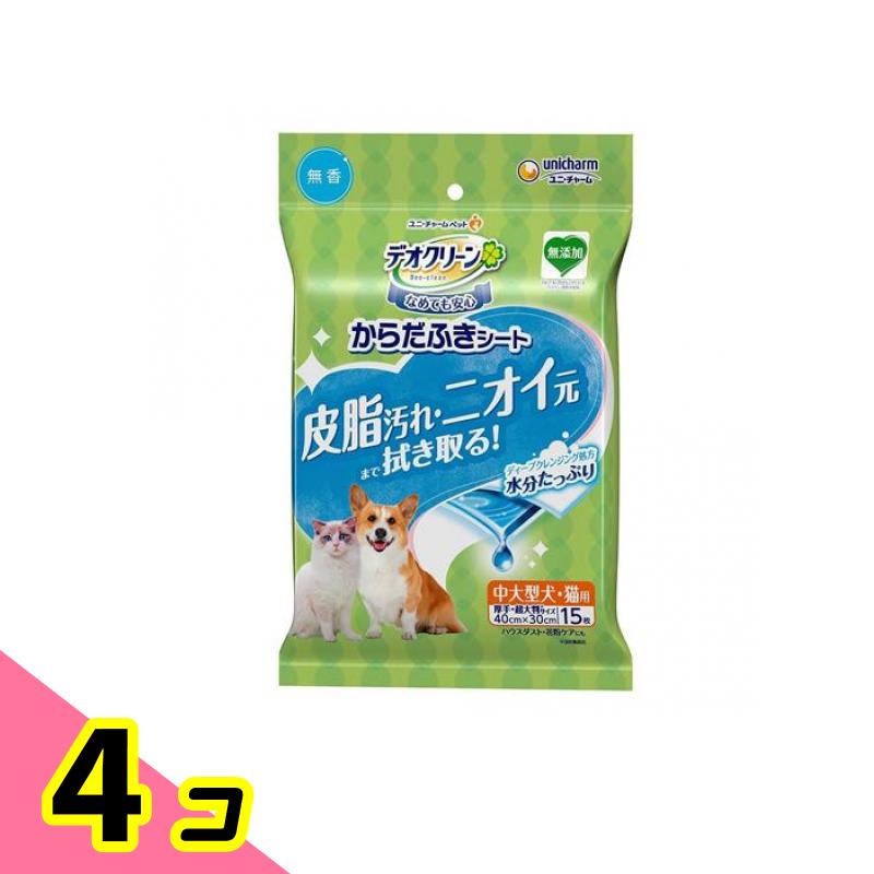 デオクリーン からだふきシート 中大型犬・猫用 無香 15枚入 4個セット