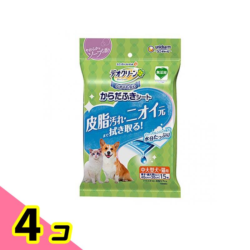 デオクリーン からだふきシート 中大型犬・猫用 ソープの香り 15枚入 4個セット