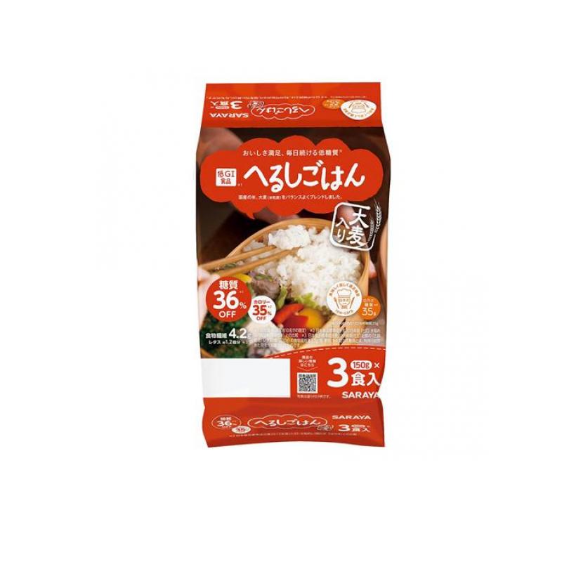 【商品名】サラヤ へるしごはん 炊飯【このような場合に】糖質・カロリーが気になるけど、白米を食べたい方に。ダイエット中の方にもおすすめ♪【保管上の注意】直射日光・高温多湿をさけ、常温で保存してください。【製造販売会社】サラヤ(SARAYA)【ご使用について】【お召し上がり方】<電子レンジの場合>フタを点線まであけて、電子レンジで約2分加熱後、かるくほぐしてお召し上がりください。(加熱時間2分は500w/600wの場合の目安です。機種により加熱時間は異なります。)<お湯の場合>フタをはがさずに天面を上にして、商品を重ねず、沸騰したお湯に入れて約10分温めてください。鍋にフタはしないでください。温め後はかるくほぐしてお召し上がりください。【使用上の注意】・酸味料由来の臭いを感じることがありますが、品質に問題ありません。・原料に大麦を使用しているため、黒条線等が残ったり、色調が異なることがありますが、品質に問題ありません。・フタ、トレーに傷がつきますとカビが生えますので、ご注意ください。・気温の変化により水滴がつくことがあります。・外装に開いている穴は、破裂を防ぐための空気穴です。【原材料】●原材料名
