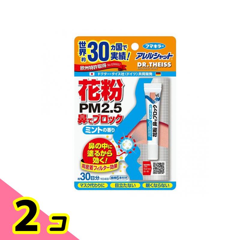 アレルシャット 花粉 鼻でブロック ミント チューブ入 5g 30日分 ハウスダスト 吸入 眠くならない 鼻の中 2個セット