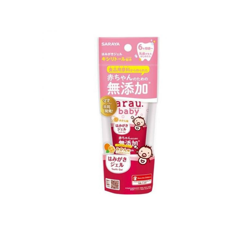 【商品名】arau.baby(アラウ.ベビー) はみがきジェル【このような場合に】6ヶ月頃〜(乳歯が生え始めたら)【製造販売会社】サラヤ(SARAYA)【ご使用について】【使用方法】・適量を歯ブラシまたはガーゼなどにとり、歯及び歯ぐきをやさしくみがいてください。・すすぎができない場合は、ブラッシング後にガーゼなどでふきとってください。【使用上の注意】(1)食品ではないので食べないでください。(2)本品の成分にアレルギーのある場合は使用しない。(3)傷など、口中や唇に異常がある時は使用しない。(4)赤み、かゆみ、刺激などの異常があらわれた時は、使用を中止して専門医に相談する。(5)目に入った時はすぐに流水でよく洗い流す。(6)子どもの手の届くところに置かない。(7)使用後はかならずキャップを閉める。(8)天然成分を使用しているので、経時的に色や香りが変化することがあります。【成分・添加物】溶剤:水/湿潤剤:ソルビトール、グリセリン、PG/甘味剤:キシリトール/pH調整剤:乳酸Na、クエン酸Na/増粘剤:カンテン、キサンタンガム/矯味剤:チャ葉エキス/可溶剤:ラウリン酸ポリグリセリル-2、ステアリン酸ポリグリセリル-10/pH調整剤:乳酸/着香剤:香料(みかん味)