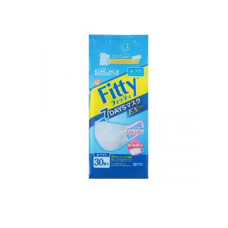 2980円以上で注文可能 マスク 不織布 個別包装 フィッティ 7DAYSマスク EXプラス ホワイト ふつうサイズ マスク用スタンドケース付き 30枚 (1個)