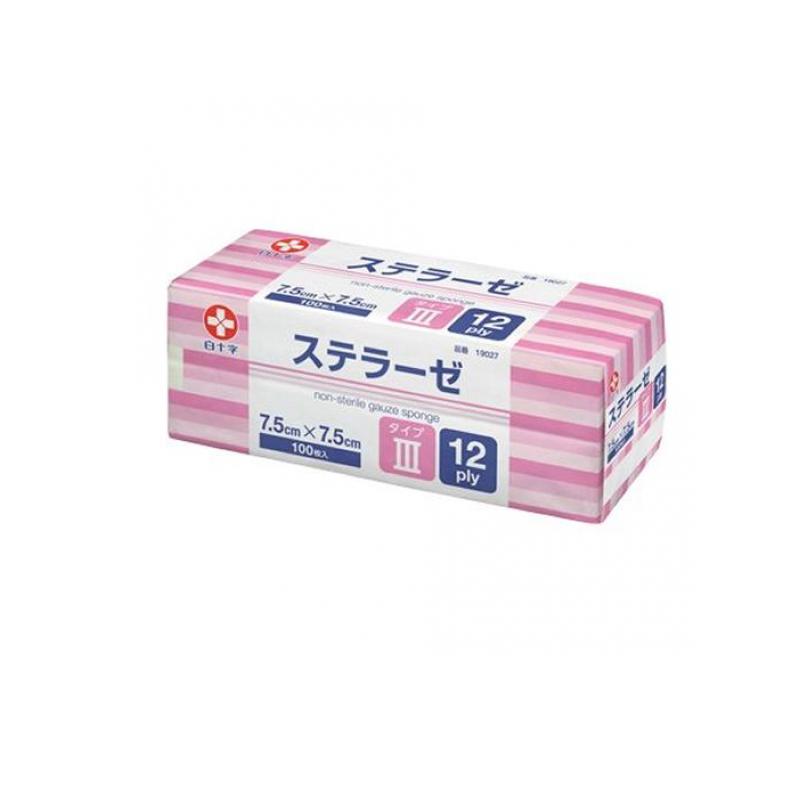 2980円以上で注文可能 白十字 ステラーゼ(未滅菌) 医療ガーゼ タイプIII 12ply 100枚入 (7.5×7.5cm) (1個)