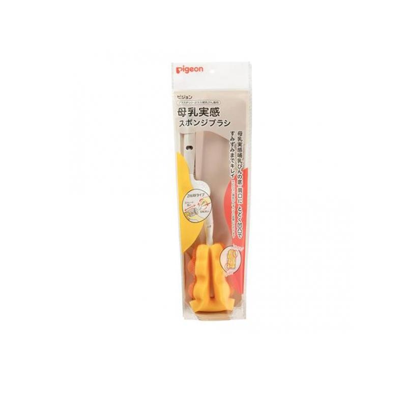 【商品名】ピジョン 母乳実感スポンジブラシ ハンドル付き本体【製造販売会社】ピジョン(Pigeon)【ご使用について】【使用上の注意】●哺乳びんへのブラシの出し入れは、ぬれた状態で軽く回しながら行うと簡単でスポンジが長持ちします。●スポンジを無理にねじったり、引っ張ったりしますと、裂けや、ちぎれの原因になる事があります。特にスリムタイプ哺乳びんではお気を付けください。●ご使用後は必ず、洗剤をよく洗い流し、水を切って直射日光を避けて乾燥させてください。●ブラシは消耗品です。摩耗や汚れが目立ってきたら新しいものと交換をしてください。●本品は哺乳びん洗い用ブラシです。用途以外のご使用はお避けください。●煮沸・電子レンジ・薬液消毒はできません。●直射日光に長時間さらしますと退色劣化することがあります。【素材】●ブラシ:ポリウレタン(耐熱温度:80℃)