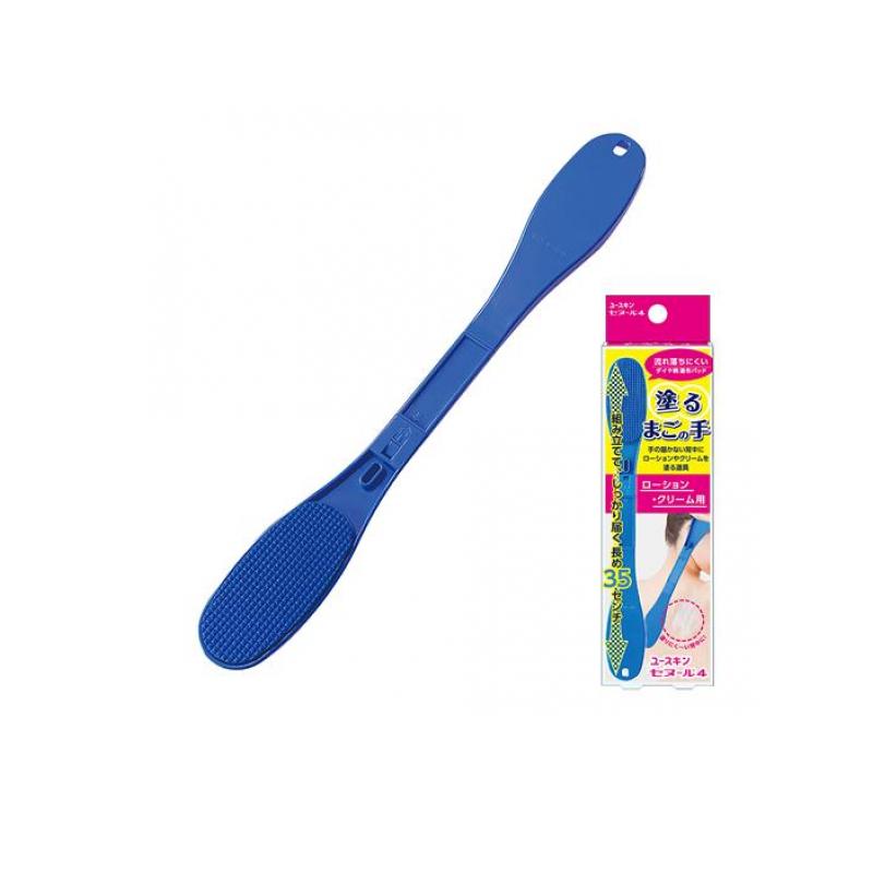 ●火のそばに置かないでください。【製造販売会社】ユースキン製薬(yuskin)【ご使用について】【使用方法】(1)本体とジョイントの矢印→をあわせ、カチッとはめて3つのパーツをつなぎます。(2)塗布部分のスポンジにクリームやローションなどを適量のばします。(3)背中にやさしくあてます。※ご使用後は塗布部分のスポンジを水で洗い、水気を切ってから十分に乾かしてください。【使用上の注意】●パーツをつなぎ合わせるとき、指などをはさまないようにご注意ください。●塗布部分のスポンジにクリームやローションをのばすとき、流れ落ちないようにご注意ください。●背中にあてるときは、ゴシゴシこすらないでください。お肌を傷つけることがあります。●背中にあてるときは、力をかけすぎないでください。破損する恐れがあります。●使用目的以外には、ご使用にならないでください。●傷や炎症などお肌に異常があるとき、お肌に合わないときは、ご使用をおやめください。●サンオイル・精油・虫よけ等のご使用はさけてください。塗布部分(ブルーのスポンジ部分)に不具合が起こる可能性があります。●固い軟膏等は、塗布部分のスポンジの溝に入ってしまうことがあります。別売の「ユースキンセヌール4(軟膏用)」をご使用ください。●熱湯で洗わないでください。変形することがあります。●衛生的にご使用いただくため、2〜3ヶ月を目安に交換することをおすすめします。●次の人は使用前に医師、薬剤師または登録販売者にご相談ください。(1)医師の治療を受けている人(2)湿潤やただれのひどい人【素材】●本体:ABS樹脂、ポリカーボネート