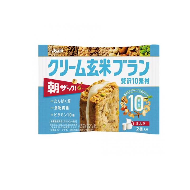 使用期限は6カ月以上先のものを送ります。●アサヒグループ食品 クリーム玄米ブラン 贅沢10素材 ミルク 2個入り●栄養機能食品(カルシウム・鉄)●たんぱく質・ビタミン10種(*1)・食物繊維・カルシウム・鉄と、10素材をおいしく手軽に摂れる「贅沢10素材」シリーズ。●6種のシリアル(2種のブラン・小麦パフ・オートミール・玄米フレーク・大豆パフ)×4 種のナッツ(アーモンド・くるみ・カシューナッツ・ピスタチオ)を練り込んだ厚焼き生地に、ミルククリームをサンドしました。●くちどけの良いサクサク感と素材のザクザク感が融合したこだわり食感“朝ザック!”。●食べ応えのある大型サイズの1個包装。[*1:V.A、V.B1、V.B2、V.B6、V.B12、V.D、V.E、ナイアシン、葉酸、パントテン酸]