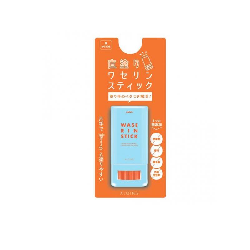 【商品名】マム ワセリンスティック【製造販売会社】アロインス化粧品(ALOINS)【ご使用について】【使用方法】・容器から5mmほどくり出し、乾燥が気になる部位に直接塗布してください。※使いはじめは内ふたをはずしてからご使用ください。※使用後はくり出した分を元に戻し、ふたをしめてください。※製造工程上、内容物にへこみや気泡がある場合や、容器や内ふたと内容物が接する部分に跡がつく場合があります。いずれも品質の不具合ではなく、仕上がりや使用感に影響はございませんので、そのままお使いいただけます。【使用上の注意】・お肌に異常が生じていないかよく注意して使用してください。・傷・はれもの・湿しん等異常のあるときは、使わないでください。・使用中または使用後日光にあたって、赤み・はれ・かゆみ・刺激・色抜け(白斑等)や黒ずみ等の異常があらわれたときは、使用を中止し、皮膚科専門医にご相談ください。・続けてお使いになりますと悪化させることがあります。・スティックをくり出しすぎると、折れたり戻らなくなることがありますのでご注意ください。・極端に高温または低温の場所、直射日光のあたる場所、乳幼児の手の届く場所には保管しないでください。【成分・添加物】ワセリン、オクチルドデカノール、合成ワックス、マイクロクリスタリンワックス、(エチレン/プロピレン)コポリマー、ミツロウ、キャンデリラロウ炭化水素、カルナウバロウ