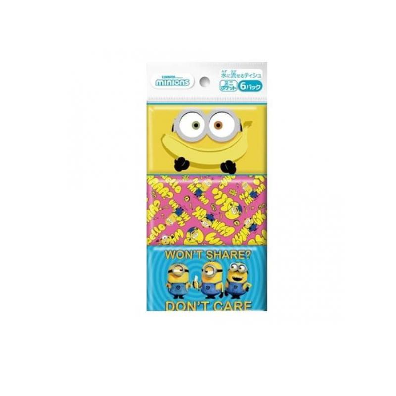 2980円以上で注文可能 水に流せるミニポケットティシュ ミニオンズ 6パック入 (柄指定不可) (1個)